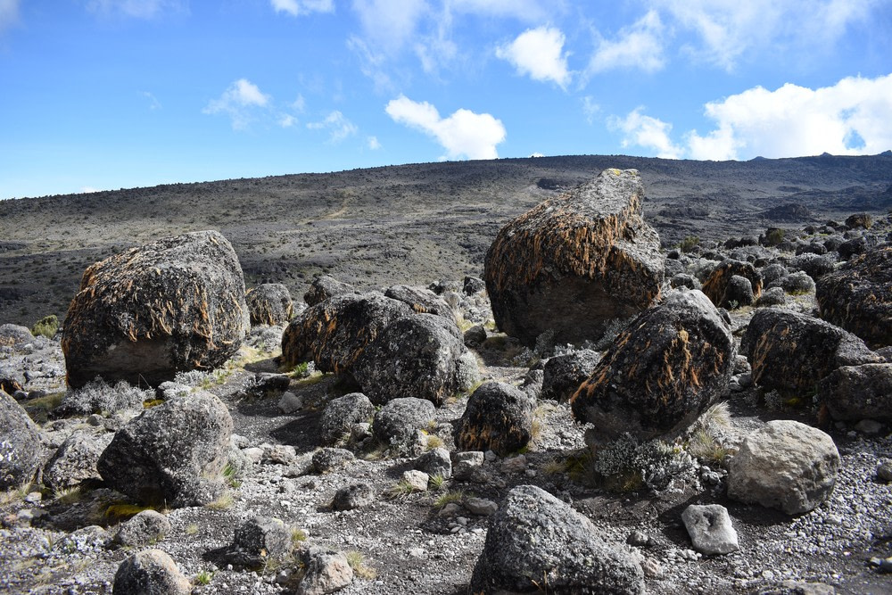 Kibo holds Kilimanjaro’s summit, Uhuru Peak (19,341 feet/5,895 meters). It went through five main lava-forming stages. The oldest is the Lava Tower group, visible at 15,000 feet (4,600 meters). Over time, successive eruptions built up dense formations that helped Kibo retain its height and shape, unlike the more heavily worn Shira and Mawenzi.