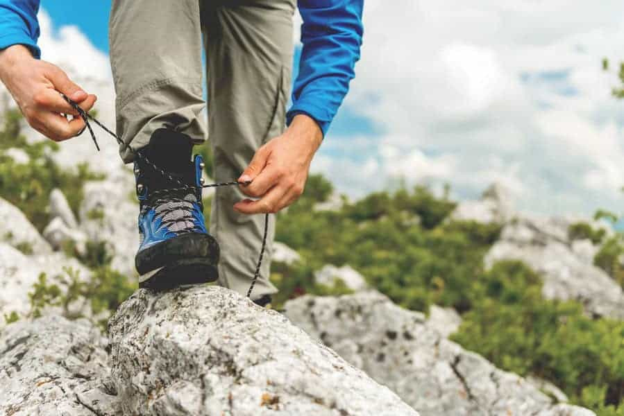 One thing people do when trying to avoid cold feet is that they lace their footwear really tight, thinking that it will trap warm air in the shoe and keep the cold air out. This is a mistake and is actually counterproductive. What actually happens is that lacing your footwear tightly, especially across the top of their foot, restricts the blood flow to your toes. This cuts off the circulation and leads to colder feet. Tie your shoes securely and firmly, but not too tight.