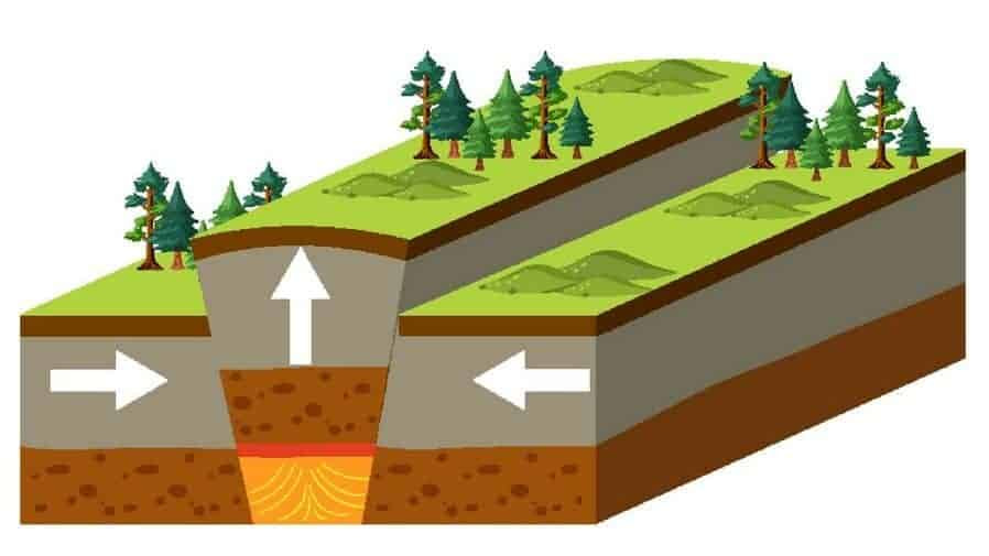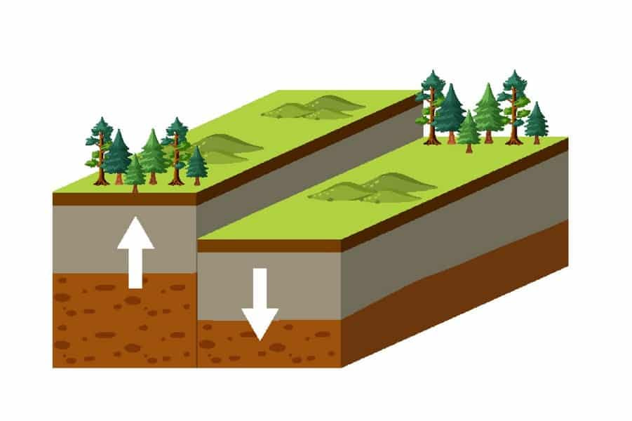 Fault-block mountains arise when faults or cracks in the Earth’s crust force some materials or blocks of rock up and others down. They are often characterized by steep fronts and sloping backs, typically forming rugged, rocky landscapes.