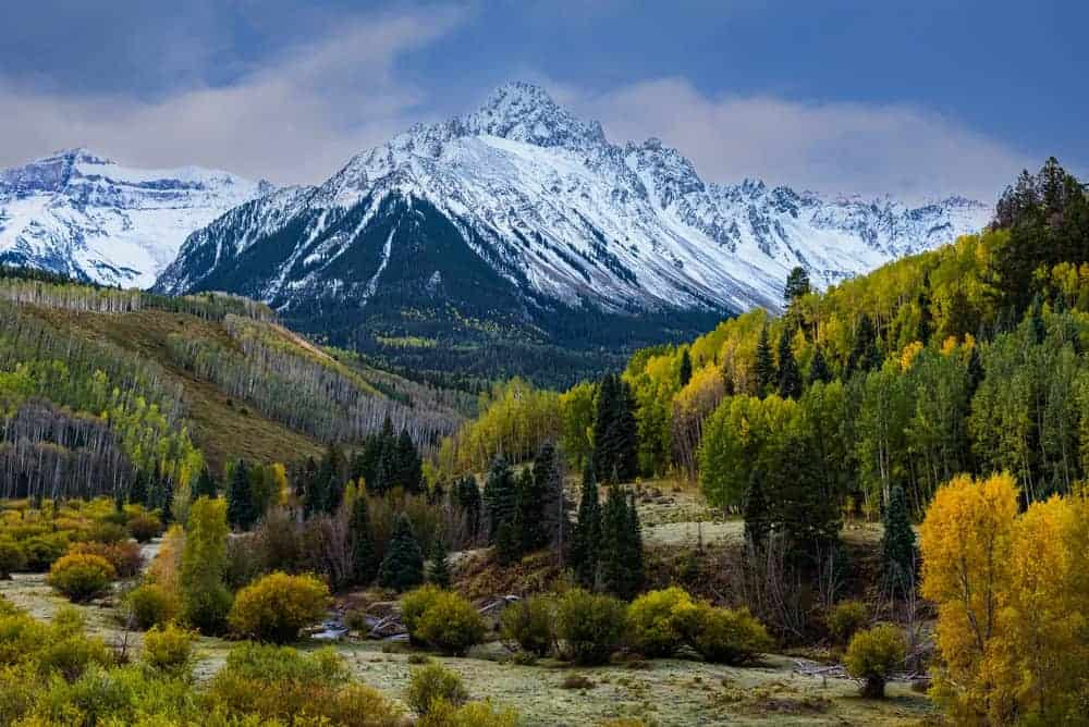 This range features sharp peaks, many rising over 13,000 feet (3,962 meters). The tallest in the range is Uncompahgre Peak at 14,309 feet (4,361 meters). One of the most well known peaks is Mount Sneffels (14,150 feet/4,313 meters), which gets its name from the Icelandic word for “snowfield.”