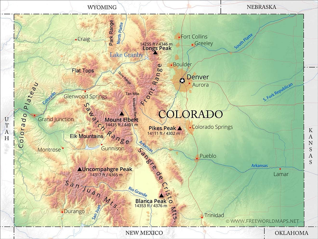 Major Mountain Ranges of Colorado