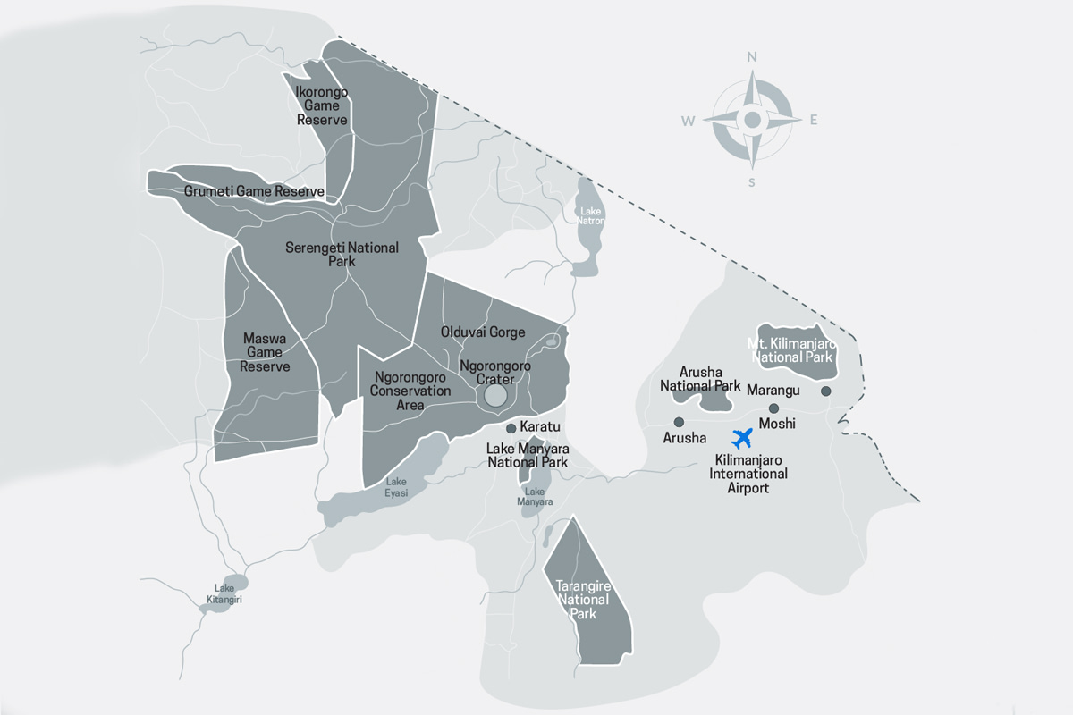 Note that we do not visit the Serengeti on itineraries less than 4 days. The Serengeti is an 8-hour direct drive from Moshi, and shorter itineraries do not allow time to travel and view game.
