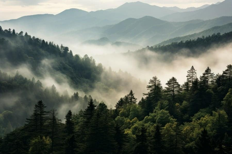 The Smoky Mountains got their name from the smoky mist that often blankets the valleys and peaks of the region. This mist or fog is the result of a natural phenomenon wherein organic compounds emitted by the abundant vegetation, combined with moisture and low-level clouds, create the hazy and misty appearance.
