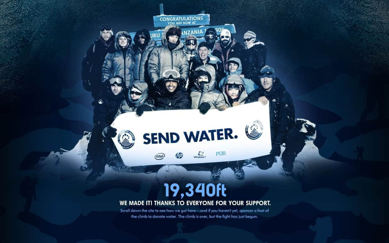 Among the other participants on the climb are: Alexandra Cousteau (National Geographic Emerging Explorer and granddaughter of famed explorer and filmmaker Jacques-Yves Cousteau), Elizabeth Gore (executive director for Global Partnerships for the United Nations Foundation), Simon Isaacs (international development and water expert), award-winning photographers Michael Muller and Jimmy Chin, Kick Kennedy (environmental activist and granddaughter of Robert Kennedy), Bernise Ang (social entrepreneur and recipient of the YouthActionNet Award and Fellowship from the International Youth Foundation), Dr. Greg Allgood (director of the Children’s Safe Drinking Water Program at Procter & Gamble), mountaineering expert Melissa Arnot and renowned trainer Jason Walsh.