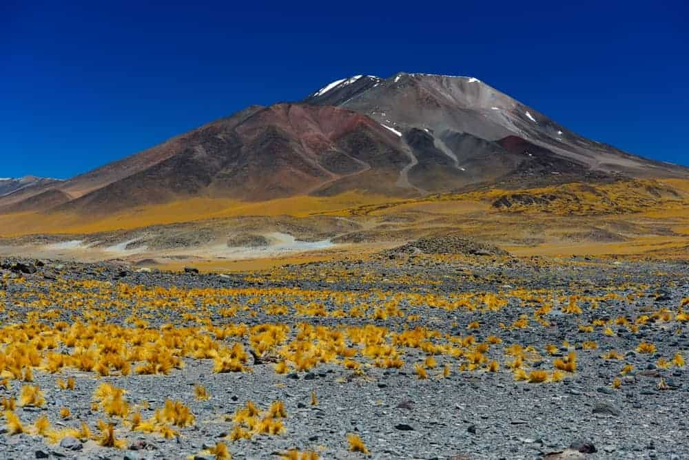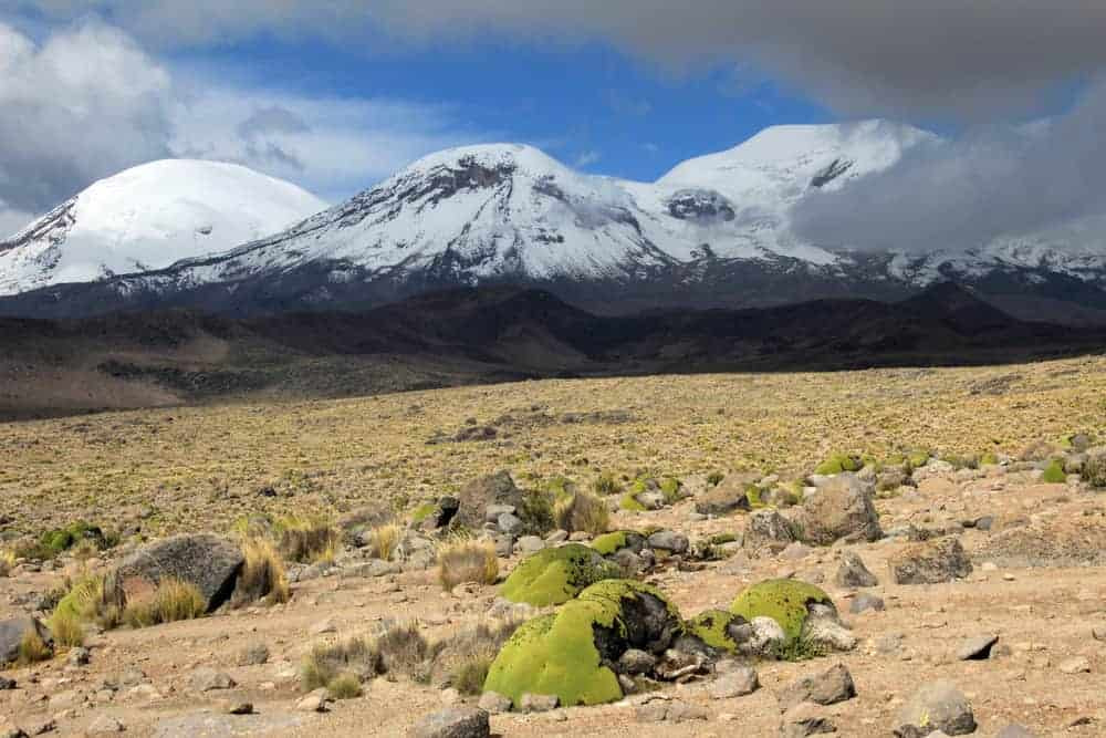 Nevado Sajama is the highest peak in Bolivia. It is part of the Cordillera Occidental of the Andes mountain range. The mountain boasts rich biodiversity in its surrounding areas, Sajama National Park. The name “Sajama” originates from the indigenous Aymara language. It refers to a type of cactus found in the region.