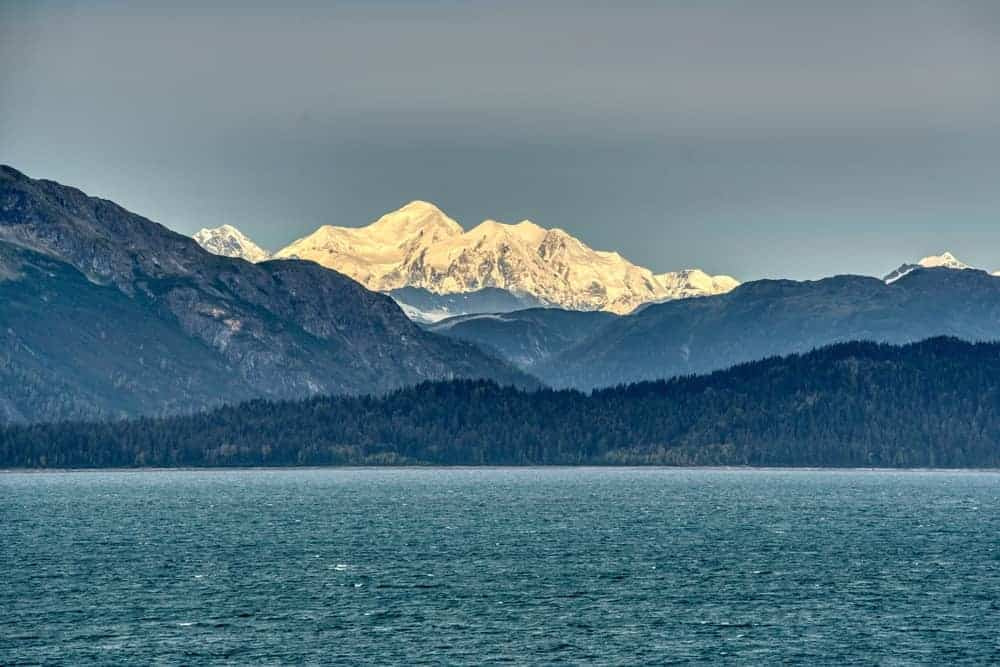 Mount Fairweather is located on the border between Alaska and British Columbia in Canada. It is the highest peak in British Columbia even though most of the mountain is sits on Alaskan soil. The peak is only 12 miles away from the Pacific Ocean.