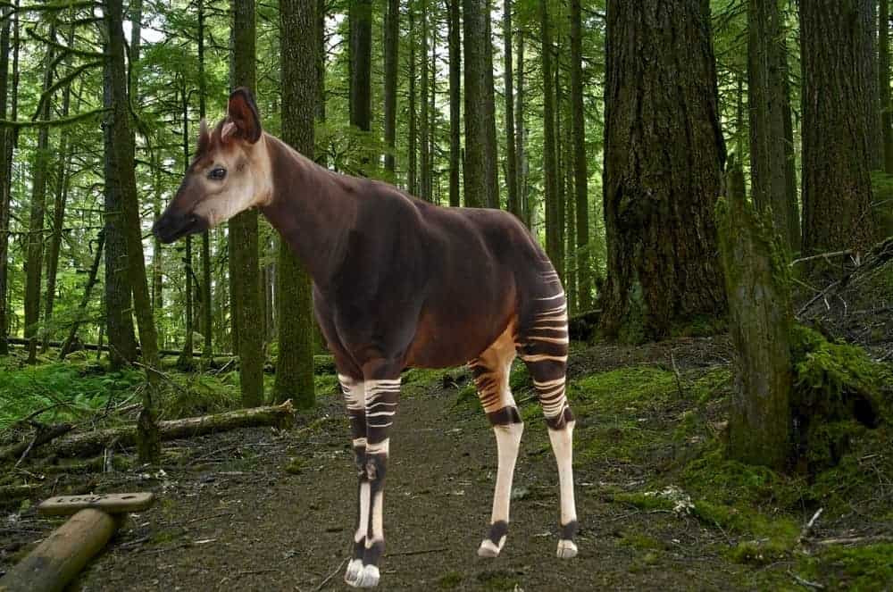 The okapi, often called the “forest giraffe,” is native to the rainforests of the Democratic Republic of the Congo. Its zebra-like stripes on its legs and rear contrast with its giraffe-like body, creating a distinctive look. Although it shares many physical traits with giraffes, the okapi is shorter and more elusive, preferring dense forests. Its long, prehensile tongue helps it strip leaves from trees, much like its giraffe relatives. It is one of the most peculiar large mammals.