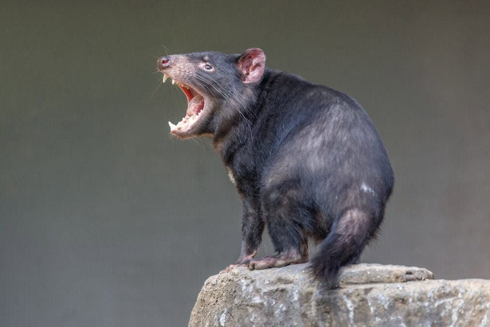 The Tasmanian devil is a carnivorous marsupial native to the island of Tasmania. Known for its aggressive temperament, it produces loud screeching noises when threatened, and its strong jaws can crush bones. Despite its small size, the Tasmanian devil has a voracious appetite and will eat almost any animal matter it encounters, including carrion. Once widespread across Australia, it is now limited to Tasmania due to competition from introduced species. The devil’s fierce personality and scavenging habits have made it a well-known, albeit strange, animal.