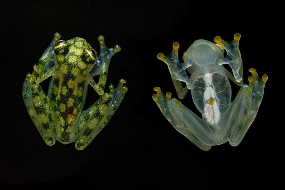 Glass frogs are small amphibians found in Central and South America, known for their translucent skin. Some species have such clear skin that you can see their internal organs, including their beating hearts, through their bellies. This transparency helps them blend into their environment, making them harder for predators to detect. Glass frogs are nocturnal, feeding on insects and laying eggs on leaves overhanging streams.