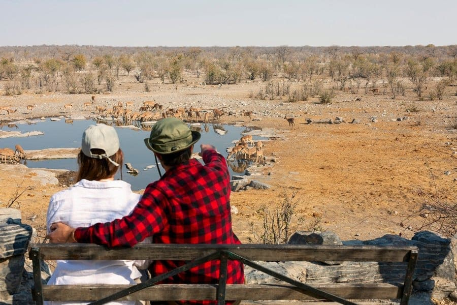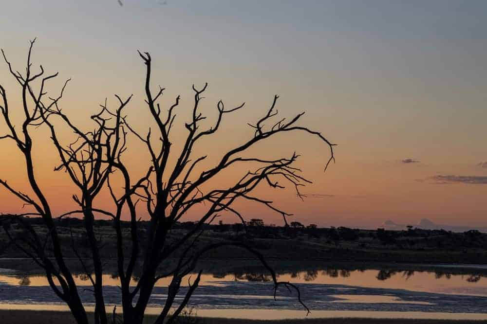 Etosha’s landscape varies from dense bush to open plains, which supports an incredible breadth of wildlife. The park’s distinct feature is its numerous waterholes, some of which are floodlit at night. These waterholes become focal points for wildlife, especially during the dry season when animals congregate in large numbers for water.