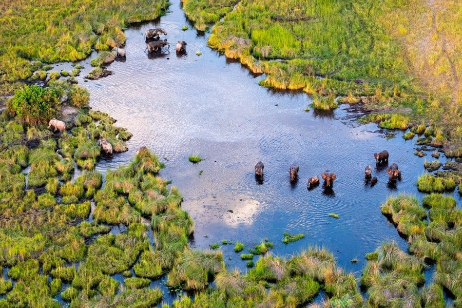 The Okavango Delta in Botswana is a miraculous oasis in the heart of the Kalahari Desert. This ecosystem is created by the annual flooding from the Okavango River. The UNESCO World Heritage site transforms into a lush, water-filled haven for wildlife, attracting thousands of animals to its life-giving waters.