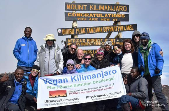 The largest and perhaps first all-vegan team performed remarkably, successfully climbing the tallest free-standing mountain in the world. At the summit, the team unfurled the Vegan Kilimanjaro banner promoting PCRM’s Barnard Medical Center, the world’s first plant-based medical facility. The center, located in Washington D.C., takes a new approach on medicine by emphasizing the role of diet and nutrition in the prevention and treatment of illness and chronic diseases.