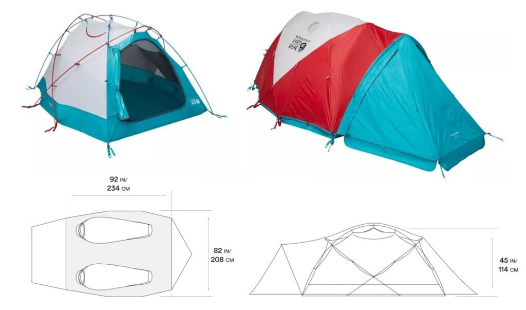 We use a three-person sized tent to comfortably house two occupants, plus their gear. The interior floor space is 48 square feet, with a large vestibule, dual doors, and internal mesh pockets. The Trango 3 is a fully waterproof tent with fully taped seams and welded corners.