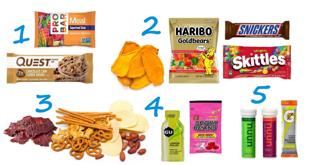 2. Salty snacks – trail mix, nuts, pretzels, jerky, Pringles. You will crave salty foods due to losing sodium from sweat. Bring some of these snacks to replace salt. Salt also contains electrolytes like magnesium, calcium and potassium so it does more than just replenish sodium.