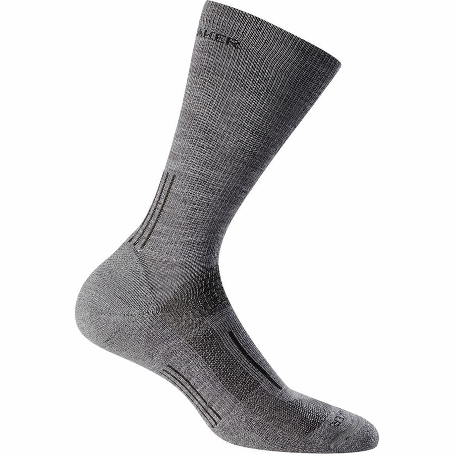 Icebreaker’s lightweight hiking sock is made of a merino wool, nylon and lycra blend. It is crew length with medium cushioning.