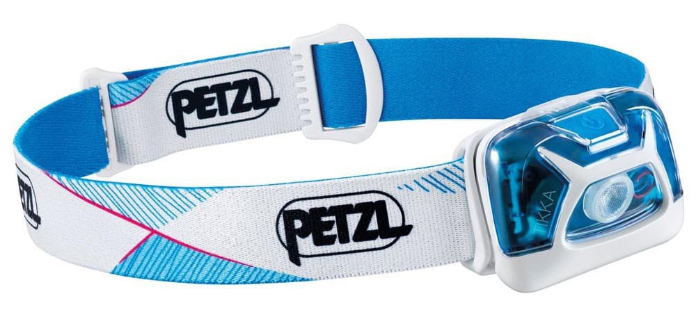 The Petzl Tikka shown above retails for $35. It has three levels of output including a max light output of 350 lumens at a distance of 70 meters and a low output of 7 lumens at a distance of 10 meters. The run time when set at low is 100 hours. It has a red light option and uses three AAA batteries.