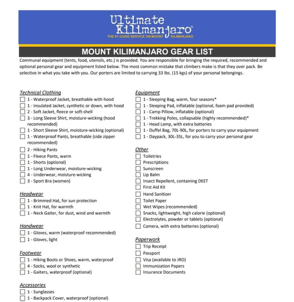 With the above listed gear, you should be able to withstand whatever weather conditions Mount Kilimanjaro has in store for you from head to toe.