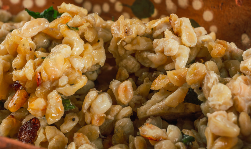 Sometimes called ‘insect caviar,’ escamoles are the larvae and pupae of ants harvested from the roots of agave plants. They look like pine nuts and are usually sautéed in butter with garlic, then folded into tacos or omelets. The flavor is nutty and slightly grassy. The texture is soft but slightly crunchy. Highly prized in central Mexico and considered a delicacy.