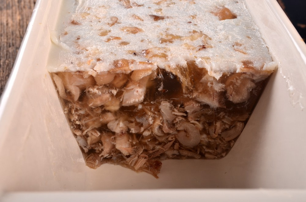 The nose of a moose is skinned, boiled, sliced, and chilled until it sets into a jelly. The outer tissue is fatty. The inner part is cartilage and gristle. It’s served cold in hunting camps and remote communities, often with bread or pickles. Rarely seen outside Indigenous or subsistence cultures. The texture turns most people away.