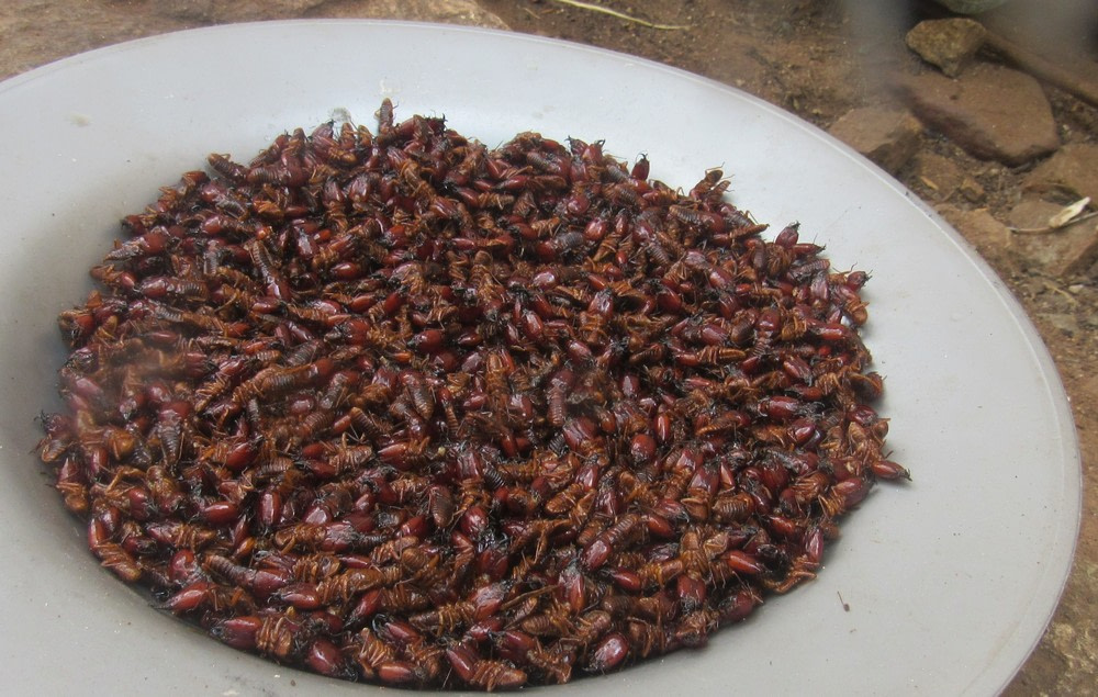 These wingless termites are harvested at night using torches or traps. Their heads are twisted off, and the bodies are either fried until crispy or laid out to sun-dry. Once cooked, they have a nutty, slightly sweet flavor. Some are eaten by the handful as snacks, while others are ground into a fine flour and stirred into porridge.